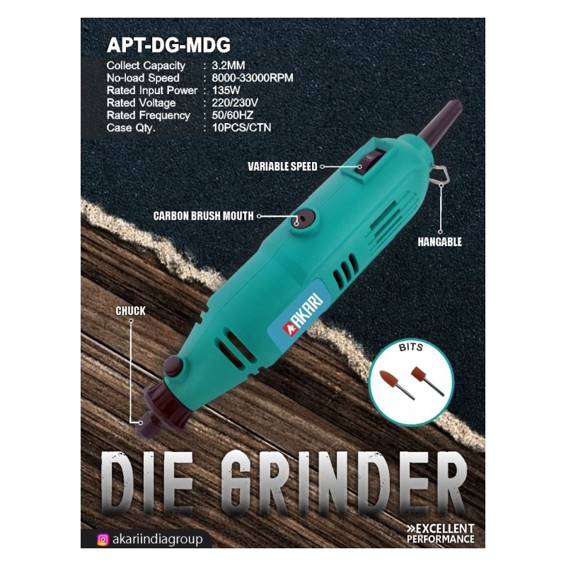 Akari Akari Mini Die Grinder (3.2Mm) (8000-30000Rpm) (10 Pcs) - Apt-Dg-Mdg