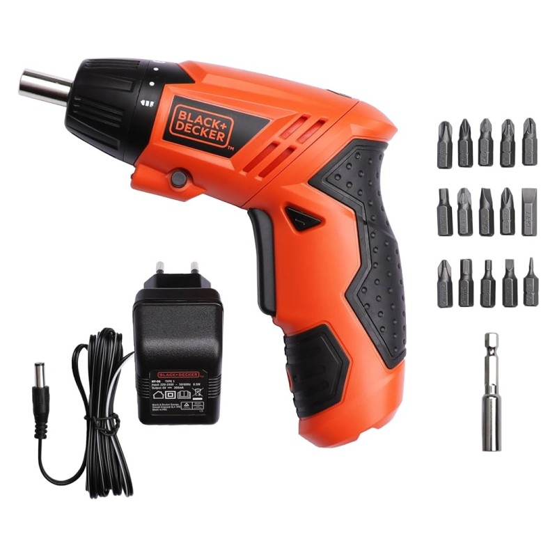 Black & Decker BLACK AND DECKER 4.8V - 4.0 NM - NI-CD SCREWDRIVER - 200 RPM - WITH 15 SCREW DRIVER BITS KC4815-IN