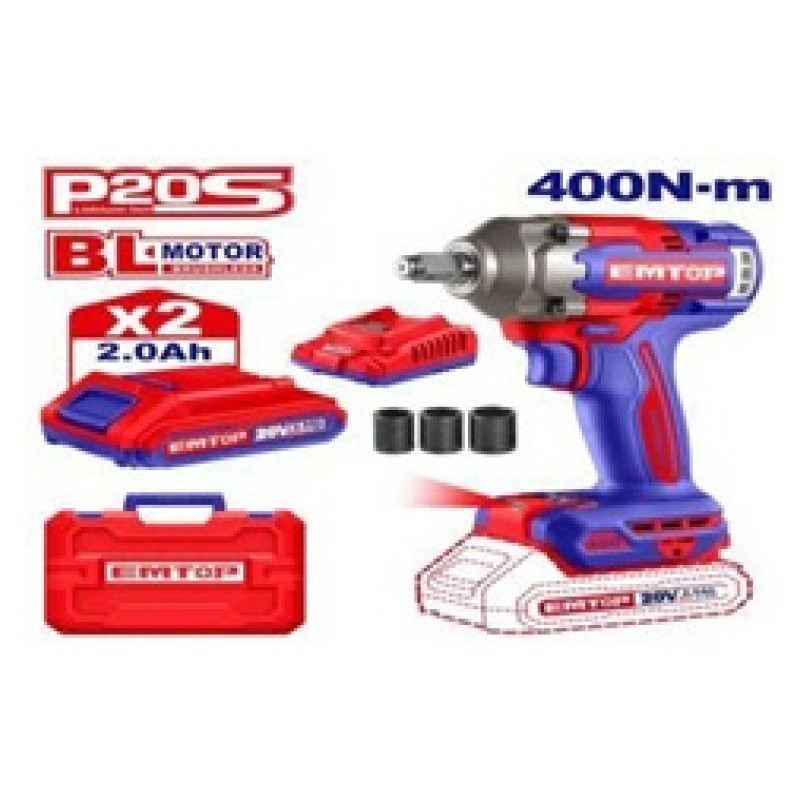 Emtop EMTOP CORDLESS IMPACT WRENCH 20V 1/2" SQ.DRIVE 400NM ECIWL2040