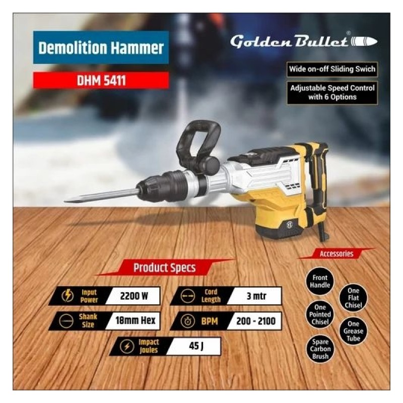 GOLDEN BULLET GOLDEN BULLET DEMOLITION HAMMER 11KGS HAMMER 2200W 18MM SDS MAX CHISEL - DHM 5411