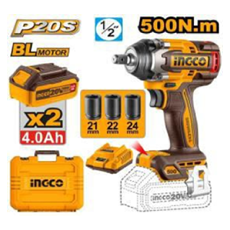 Ingco INGCO 20V CORDLESS IMPACT WRENCH SQ. DR.- 1/2 INCH - 500NM - CIWLI2050