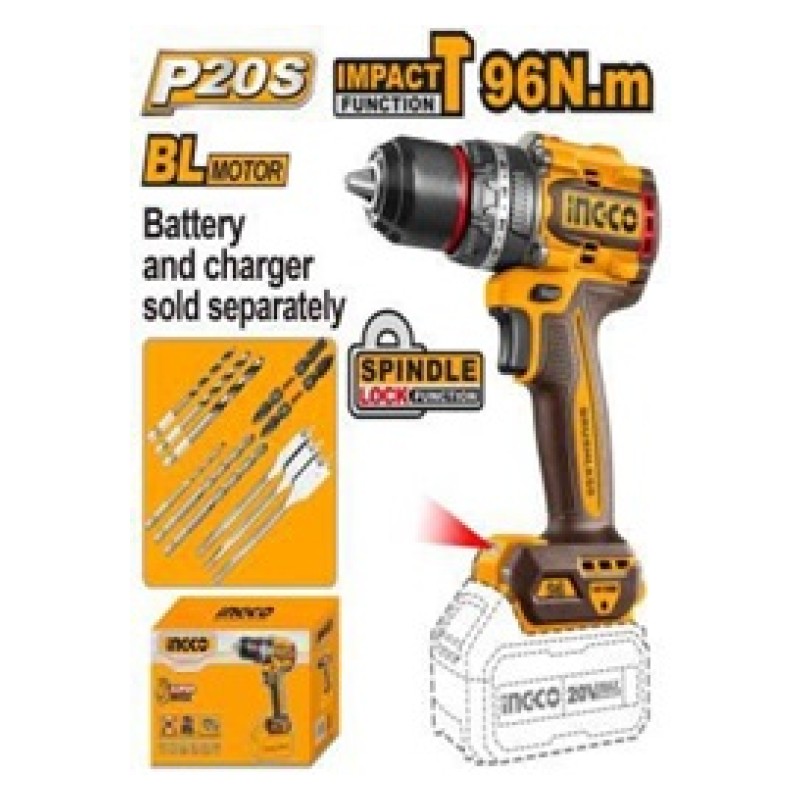 Ingco INGCO BRUSHLESS CORDLESS IMPACT DRILL 96NM - CIDLI209681