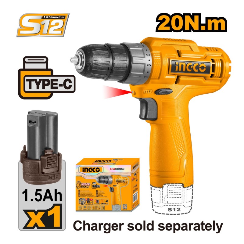 Ingco INGCO CORDLESS DRILL 12V 20NM CDLI12428